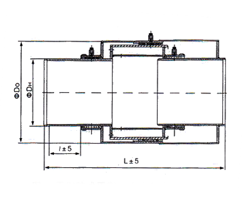 結(jié)構(gòu)特點(diǎn)是:采用三個(gè)填料密封箱;準(zhǔn)確的設(shè)計(jì)一個(gè)封閉流體環(huán)腔,利用流體靜壓力產(chǎn)生對兩側(cè)管道的拉緊力,抵消管道拐彎或盲端處固定支架上作用的流體推力。這種結(jié)構(gòu),由于流體直通式流懂,所以流體阻力損失很小,安裝長度短。