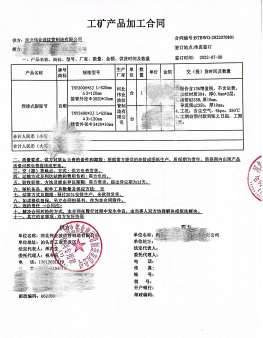 公司名稱:河北偉業波紋管制造有限公司 公司地址:河北省泊頭市工業開發區 電話:0317-8184517 0317-8185517 0317-8194444